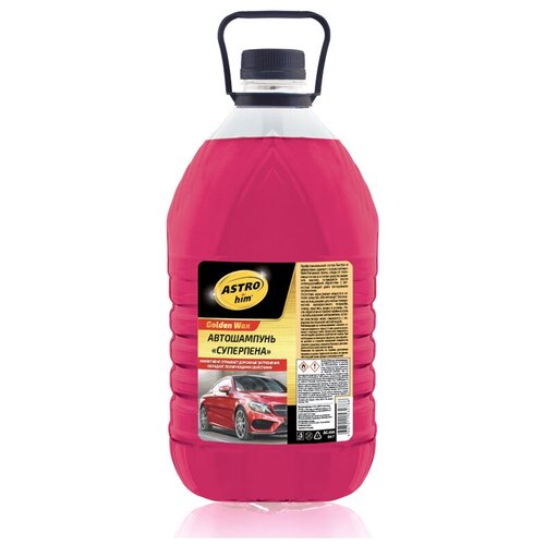 Автошампунь "Суперпена", канистра ПЭТ 5 л AC350 ASTROhim. Концентрированный автомобильный шампунь, обладающий обильным пенообразованием. Обеспечивает глубокий очищающий уход, удаляет самые стойкие дорожные загрязнения, такие как пятна бензина, масла и дорожной грязи, следы от насекомых. Эффективно очищает лакокрасочное покрытие, стекла, пластиковые, резиновые и хромированные детали автомобиля, а также колёсные диски. Образует на поверхности тонкую полимерную плёнку. Придаёт кузову автомобиля блеск. Легко разводится в холодной и горячей воде и легко смывается, не оставляя пятен и следов на кузове. Содержит в составе антикоррозионные добавки и не содержит солевых компонентов, поэтому не вызывает коррозию кузова. Безопасен для любого типа лакокрасочных покрытий, резиновых, пластиковых и хромированных деталей. Автошампунь биоразлагаем, поэтому не наносит вреда окружающей среде. Рекомендации ПО использованию Растворите в 5-7 л холодной или тёплой воды 50 мл автошампуня. Вымойте кузов автомобиля губкой, регулярно её переворачивая и смывая грязь, во избежание царапин. Смойте пену водой и протрите кузов насухо замшей или чистой тряпкой.
