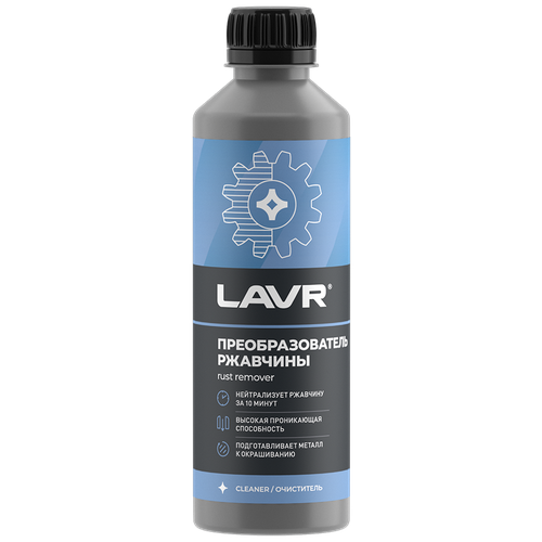 Быстро и эффективно удаляет ржавчинуУлучшает адгезию грунтовки и краски к металлуПрепятствует распространению коррозии и разрушению лакокрасочного покрытияОбладает высокой проникающей способностьюМожет применяться для облегчения демонтажа приржавевших соединенийСодержит смесь органических и неорганических кислотДействует за 10 минутБезопасен для конструкционных материалов автомобиляИмеет экономичный расходСостав удаляет ржавчину на кузове и деталях автомобиля, в том числе на поверхностях большой площади. Предотвращает развитие коррозии и разрушение ЛКП. Улучшает адгезию грунтовки и краски к металлу. Может применяться для демонтажа приржавевших соединений. Действует быстро, расходуется экономично.Применение: Очистить поверхность от рыхлой и пластовой ржавчины с помощью металлической щетки или абразивных материаловНанести препарат губкой, кистью или любым другим способомЧерез 10 – 15 минут удалить жесткой щёткой остатки средства и ржавчиныПромыть поверхность проточной водой и протереть насухо При необходимости повторить обработку. Не допускать попадания на элементы электропроводки.