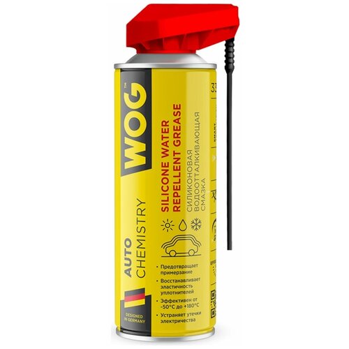 Силиконовая водоотталкивающая смазка с профессиональным распылителем 2 в 1 335 мл WOG продлевает срок службы резиновых уплотнителей и предотвращает их примерзание зимой. Отлично подходит для устранения скрипа дверных петель, трущихся пластиковых элементов салона и кузова автомобиля. Защищает и смазывает механизмы замков и предотвращает их замерзание. Предохраняет от утечки тока и применяется для изоляции контактов.
