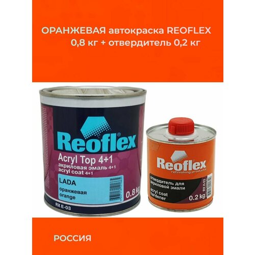 Краска для автомобиля оранжевая. Reoflex оранжевая эмаль предназначена для окраски кузовов и пластмассовых деталей автомобиля. Может применяться как для легковых так и крупногабаритных транспортных средств. Эмаль обладает высоким блеском, повышенной укрывистостью, прочностью и эластичностью. Быстро сохнет. Краска применяется только с отвердителем ( в комплекте) , до рабочей вязкости разбавляется растворителем на 30% ( в комплект не входит). Высыхает как при воздушной сушке (16 часов при 20 градусах), так и в камере покраски (45 минут при 60 градусах). После сушки, при необходимости, акриловую эмаль можно отполировать. Акриловая краска не требует нанесения поверх неё лака.