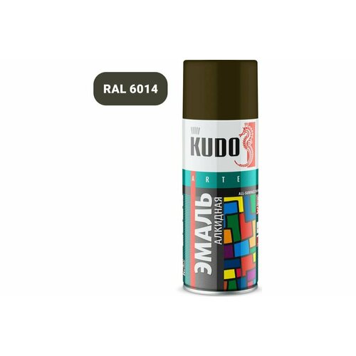 Эмаль KUDO акриловая RAL6014 хаки высокоглянцевая аэрозольная быстросохнущая универсальная 520мл