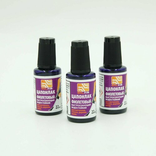 Цапон лак Solins быстросохнущий водостойкий, защитный для металла, стекла ламп, дерева, печатных плат, защита от коррозии, фиолетовый набор 3 шт.