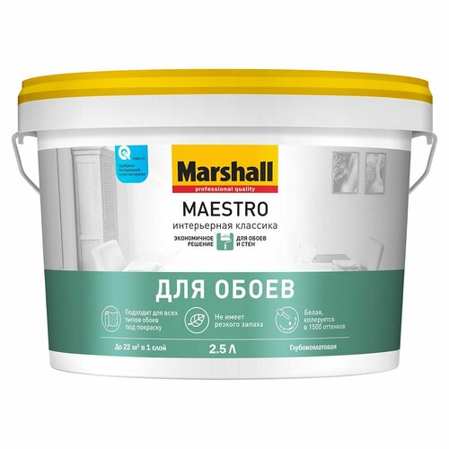 MARSHALL MAESTRO интерьерная классика краска для стен и потолков, глубокоматовая, база BW (2,5л)