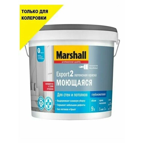 Водоэмульсионная краска для фасадных поверхностей Marshall Maestro / Маршал Маэстро "Для фасада" глубокоматоваяФасадная акриловая краска для наружных работ. При нанесении образует гладкое высокоукрывистое, атмосферостойкое покрытие, с хорошими грязе- и водоотталкивающими свойствами. Глубокоматовая структура визуально делает поверхность более ровной, позволяя скрыть небольшие дефекты. Срок службы покрытия на фасадных поверхностях до 10 лет. ПреимуществаОбразует атмосферостойкое покрытиеОбладает отличной укрывистостьюРекомендуется для окраски подземных гаражей, застекленных балконов и лоджийОбласть примененияДля наружных работ. Подходит для нанесения на полностью просохшие минеральные поверхности (бетон, штукатурка, кирпич и т. п.). Рекомендуется для окраски фасадов жилых и общественных зданий, подземных гаражей, остекленных балконов, лоджий, тамбуров. Особенности примененияПеред применением разбавить в рекомендованной пропорции водой и тщательно перемешать. Произвести подготовку поверхности. Рекомендуется наносить в два слоя при температуре от +5°C до +30°С, относительной влажности воздуха <80%. Для укрепления базовой поверхности и повышения адгезии слабо связанные или пористые поверхности обработать грунтовкой глубокого проникновения Export Base.