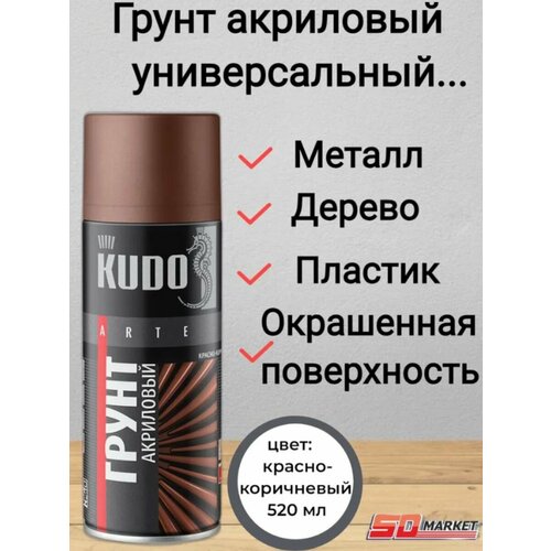 Высококачественный быстросохнущий универсальный акриловый грунт KUDOпредназначен для улучшения сцепления основного покрытия с окрашиваемой поверхностью и обеспечения антикоррозионной защиты деталей из черных и цветных металлов. Отлично подходит для подготовки к окраске дерева, гипса и пластика всеми видами лакокрасочных материалов. Допускается грунтование старых лакокрасочных покрытий.Грунтовка обладает высокой тиксотропностью и скоростью высыхания, что обуславливает максимальное удобство применения. Легко наносится на труднодоступные места, имеет хорошую укрывистость и возможность шлифования. Подлежит окрашиванию любыми видами эмалей.сушка между слоями 5-10 минутвысыхание на отлип 15-20 минутполное высыхание 1,5 часаповерхности для нанесения Металл, Дерево, Пластик, Окрашенная поверхностьрасход ≈ 2 м²