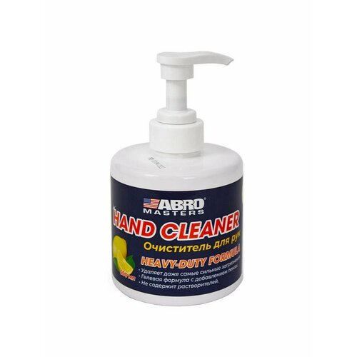 Очиститель рук Abro Masters с содержанием пемзы с дозатором, лимон 500 мл. Высокоэффективный очиститель для рук с содержанием пемзы.Свойства:• с легкостью очищает жирные пятна, грязь, сажу, чернила, краску;• не содержит растворителей;• уникальные ухаживающие компоненты смягчают и защищают кожу рук;• обладает приятным ароматом лимона.Используется для удаления загрязнений с кожи после ремонтных, строительных и других работ.внимание: раздражает глаза. При попадании промойте большим количеством воды. При попадании средства внутрь не вызывайте рвоту. Немедленно обратитесь к врачу. Беречь от детей.