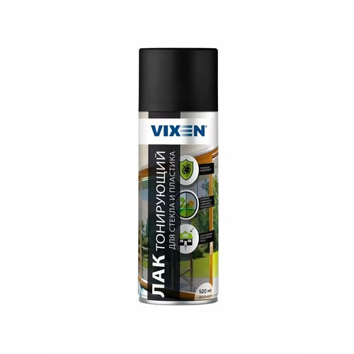 Лак аэрозольный тонирующий Vixen — это быстросохнущее средство в виде аэрозоля. Лак на акриловой основе выполняет декоративную функцию и эффективно тонирует поверхности из пластика и стекла, сохраняя их прозрачность. Средство используется для зеркал, фонарей автомобилей, затемнения оконного или дверного проемов внутри и снаружи помещения (коридора, гаража, подвала).Преимущества:отличается хорошей адгезией к поверхностям из дерева, пластика, стекла, керамики, бетона;выполняет защитные и декоративные функции;выдерживает перепады температуры;исключает выгорание на солнце, не отшелушивается после высыхания;поставляется в объеме 520 мл;расхода одного баллона хватает на 2 м² в зависимости от количества слоев;время полного высыхания при температуре до 20°С составляет 3,5 часа;перед нанесением тонирующего средства поверхность предварительно очищается и обезжиривается.