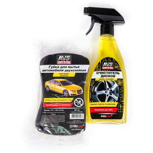 Очиститель дисков 500 мл. + Губка поролоновая, двухслойная / Набор для ухода за автомобилем / очиститель экстерьера