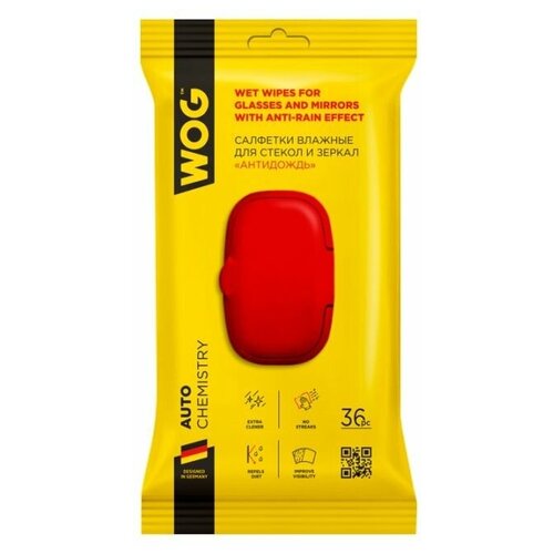 Салфетка WOG влажная для стекол и зеркал антидождь 36 шт