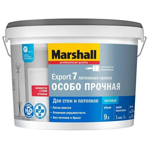 Краска для стен и потолков латексная Marshall Export-7 матовая база BC 9 л.