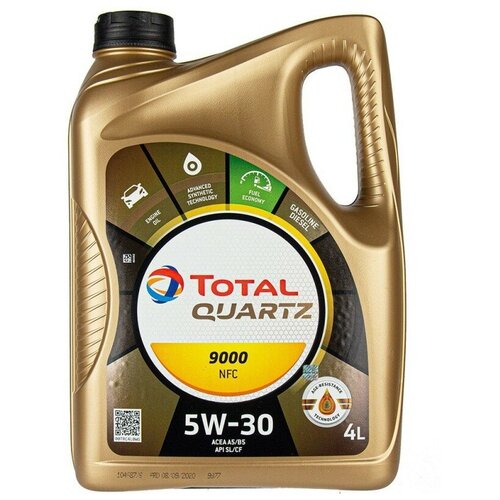 Всесезонное моторное масло для бензиновых и дизельных двигателей.Применение: TOTAL QUARTZ 9000 FUTURE NFC 5W-30 превосходит наиболее строгие требования современных производителей бензиновых и дизельных двигателей легковых. Рекомендуется для турбированных, мультиклапанных двигателей и двигателей с прямым впрыском. Может применяться при наиболее сложных условиях эксплуатации (трасса, городские поездки по пробкам) в любое время года.Моторное масло TOTAL QUARTZ 9000 FUTURE NFC 5W-30 совместимо с двигателями, оборудованными системами каталитического дожига выхлопных газов и работающими на неэтилированном бензине или сжиженном газе.Преимущества: Экономия топлива, увеличенный интервал замены, любые условия эксплуатации, защита и чистота узлов и деталей, экономия топлива в тесте M111 FE, прекрасная стойкость к окислению.Легкий запуск двигателя в холодное время года благодаря прекрасной текучести при низких температурах. Образует прочную надежную пленку на деталях при высоких рабочих температурах.Гарантированное смазывание с момента пуска двигателя, отличные моющие и диспергирующие свойства.Допуски и спецификации: ACEA A5; B5; A1; B1; FORD WSS-M2C-913-C; FORD WSS-M2C-913B