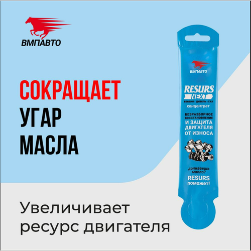 RESURS NEXT КонцентратСамое современное и экономичное средство в борьбе с износом двигателя!Безразборный ремонт двигателя по экономичной цене. Снижение угара масла Выравнивание компрессииВосстановление мощности до заводских характеристик. Для бензиновых, дизельных моторов и двигателей, работающих на сжиженном и сжатом газе.Концентрированная присадка RESURS Next для самостоятельного приготовления и использования. Перед применением изучить инструкцию в разделе "Применение"Заменяет 1 флакон RESURS Next 75 г и 2 флакона RESURS Universal. Мы поместили в стик-пакет только самое полезное - частицы сплава олова, серебра и меди в концентрированном виде. Осталось только развести присадку в масле и залить. При этом достаточно даже малого количества масла - 100-200 мл. Оригинальная упаковка в виде стик-пакета позволила сэкономить на закупке флаконов и коробок и сделать невероятно демократичную цену. В 3 раза дешевле одного флакона готовой присадки.Эффективность присадки RESURS Next при этом сохраняется даже в концентрате. Перед применением непременно изучите инструкцию на упаковке или в нашем коротком видеоПоказания к применению:угар масла;перерасход топлива;неровная компрессия;вибрации и шум;дымление;недостаточная мощность двигателя.Количество активных частиц в одном 17г стик-пакете Концентрата соответствует одному флакону готовой присадки RESURS Next 75г.дозировка Объем масла Количество флаконов3-5 л 16-10 л 210-12 л 3инструкция ПО применению:1. Прогрейте и заглушите двигатель2. Смешайте 150-200 мл чистого масла с содержимым пакета RESURS Next. Залейте смесь в маслозаливную горловину3. Начните движение. Эффект проявится через 150 км пробега