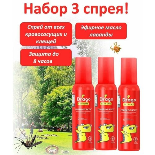 Drago Средство спрей репеллентное Extreme от насекомых 100мл, набор 3шт