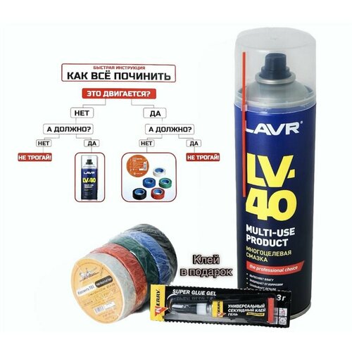 Подарочный набор универсальный - идеально подойдет на любой праздник. Выбирайте подарочный набор, чтобы порадовать мужчин и женщин на любой праздник. Инструкция прилагается.)Состав:• многоцелевая смазка LAVR: многофункциональное средство для вытеснения влаги, защиты от коррозии, устранения скрипов и заеданий, смазывания любых узлов и механизмов. В отличии от аналогов обладает приятным запахом. Перед применением тщательно встряхнуть. Для достижения наилучшего результата использовать при температуре баллона выше +14°С.*Распылить средство на нужные детали и соединения. *Оставить на 1 – 2 минуты для воздействия. *При необходимости повторить обработку.• изолента ПВХ Airline набор 5 шт. синяя, чёрная, красная, зеленая, белая. 15 мм х 10 м.Расходный материал, предназначенный для обмотки проводов и кабелей с целью их электроизоляции. Изолента изготавливается из поливинилхлоридной пленки с нанесённым на неё клеевым слоем и полностью соответствует ГОСТу-16214-86.Высокая сила адгезии.Состав: пвх, клей.Размер: 15 мм x 10 м.Напряжение: 5000 V.Температура использования: -50С/+70С.Температура монтажа: +5С/+60С.• Универсальный секундный клей гель KERRY SUPER GLUE GEL 2 г.Предназначен для быстрого и прочного склеивания изделий из различных материалов, таких как пластик, керамика, резина, металл, кожа, дерево и других. Склеивает мгновенно. Предназначен для всех видов быстрых ремонтных работ. Благодаря особой консистенции позволяет корректировать место склейки. Для гладких поверхностей, клеит за секунды, водостойкий, бесцветный. Основа клея: цианоакрилат.• упаковка: косметичка универсальная. Инструкция.