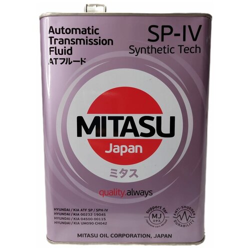 Масло трансмиссионное MITASU, ATF SP-IV, HUYNDAI/KIA, синтетическое, 4л арт. MJ3324