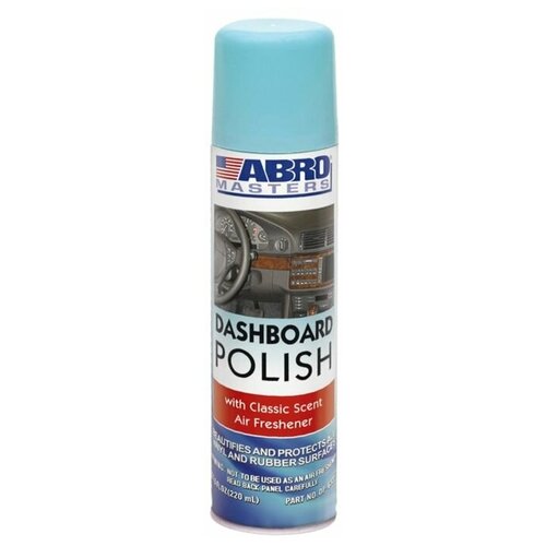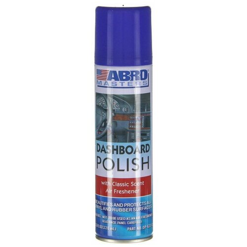 Полироль панели ароматизированная ABRO MASTERS, 220 мл, Классический аромат DP-633-CL. Полироль панели с ароматом в аэрозольном баллоне. Используется для обработки виниловых, резиновых и пластиковых поверхностей. Может применяться для полировки салонов автомобилей и катеров, обработки шин, чемоданов, сумок и обуви любых цветов и т.д.(2717307)
