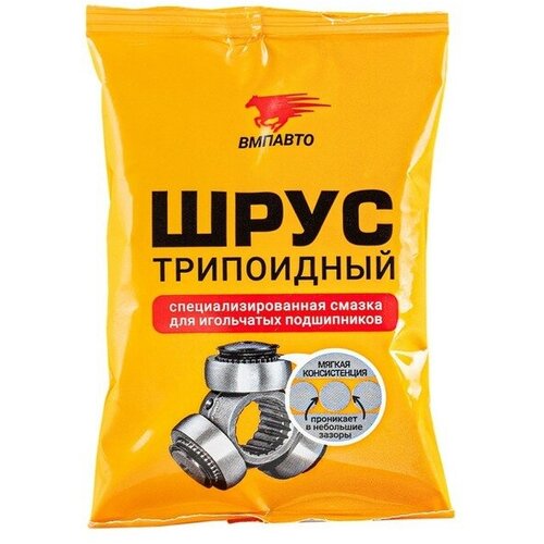 Артикул: 2004-789. Вес: 90 гр., Размер упаковки: 8 x 13 x 2 см., Вес, г/Объём, мл: 90, Темпер. ограничение НЕ ниже ℃: -25, Вид: Смазки, Тип ёмкости: Пакет. Смазка ШРУС-триподный ВМП cоздана для обслуживания трипоидных (внутренних) шрусов с игольчатыми подшипниками. Увеличивает срок службы узла, благодаря высоким противозадирным и противоизносным характеристикам. Мягкая по консистенции (NLGI 1), при нанесении обеспечивает высокий уровень проникновения в небольшие зазоры. Не содержит твердых присадок (частиц графита, дисульфида молибдена и пр.), способных блокировать работу игольчатого подшипника в трипоидном шрусе. Разработана с применением масел средней вязкости для обеспечения надежной работы при низких и высоких температурах, а также в широком интервале скоростей сдвига.