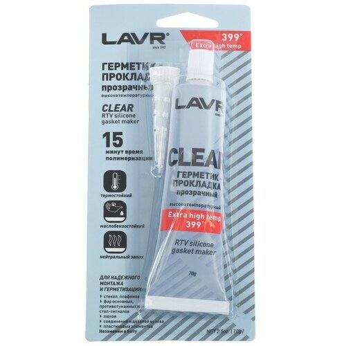 Герметик-прокладка CLEAR LAVR RTV, прозрачный, высокотемпературный, силиконовый,70г. Ln1740