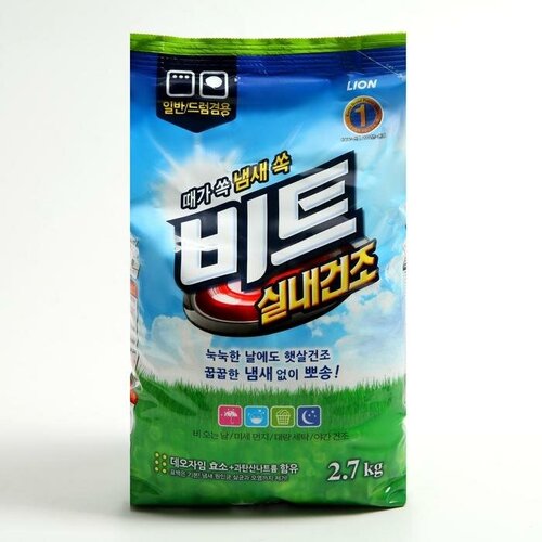 LION Концентрированный стиральный порошок "Beat in door" гипоаллергенен и полнстью смывается водой. Подходит для стирки детского белья. Расход в 6-8 раз меньше другого средства для стирки.Состав: альфа олефин сульфонат натрия, линейный алкилбензолсульфонат натрия, полиоксителен, силикат натрия, сульфат натрия, карбонат натрия, карбонат кальция, бикарбонат натрия, тетраметилэтилендиамин, очищенная соль, цеолит, фермент, флуоресцентный отбеливатель, отдушка, краситель.