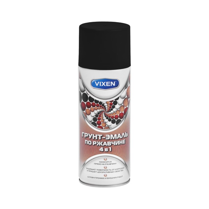 Грунт-эмаль по ржавчине 4 в 1 VIXEN, черный янтарь RAL 9005, аэрозоль 520 мл VX-519005