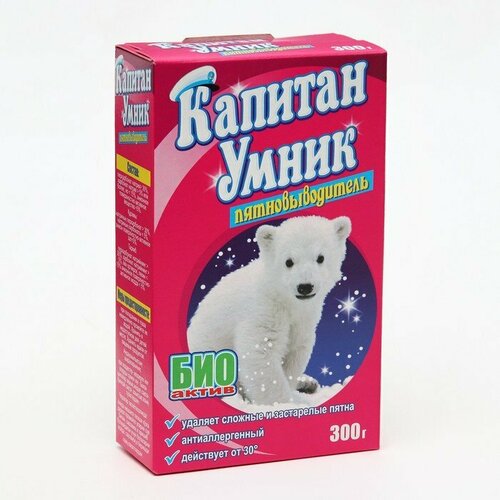 Артикул: 2068-930. Вес: 332 гр., Размер упаковки: 4.5 x 16 x 9.5 см., Температурное ограничение: Нет, Вес, г/Объём, мл: 300, Назначение: Для всех видов тканей, Форма выпуска: Порошок. Пятновыводитель "Капитан Умник" в упаковке весом 300 грамм - это надежное решение для борьбы с самыми упорными пятнами на вашей одежде и различных поверхностях. Этот продукт обеспечивает эффективное и быстрое удаление разнообразных загрязнений, возвращая вашим вещам первозданную чистоту. Легко впитывается в ткани и не только устраняет пятна, но и освежает ткани, придавая им новизну. С пятновыводителем "Капитан Умник" ваши вещи всегда будут выглядеть как новые.