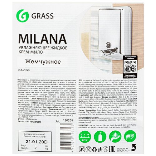Товарное предложение: GRASS Жидкое крем-мыло Grass Milana "Жемчужное", 5 л