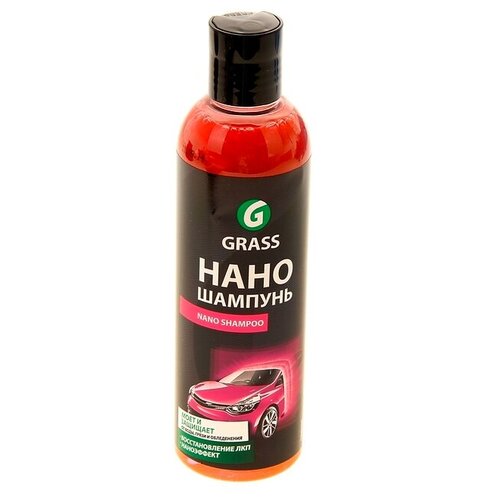 1057051 Наношампунь Grass Nano Shampoo, 250 мл Назначение: Высокопенный шампунь совмещает в себе мойку и защиту лакокрасочного покрытия автомобиля. Он восстанавливает и придает блеск лакокрасочной-поверхности, создает тонкую защитную пленку на кузове, защищающую от воды, грязи, обледенения. Обработанная поверхность дольше остается чистой и легко моется. Состав держится на кузове до 30 дней. При повторных применениях наносредства продолжительность защитного покрытия увеличивается. Способ применения: 1. Предварительно помыть автомобиль с помощью любого средства для бесконтактной мойки GraSS. 2. Нанести наношампунь на поверхность. Это можно сделать вручную губкой или с помощью пенокомплекта. Для ручной мойки необходимо развести концентрат из расчета 50мл на 10 л теплой воды. Для нанесения с помощью пенокомплекта (1л) потребуется 100мл концентрата. После нанесения средства следует растереть его на поверхности губкой или специальной перчаткой. 3. Смыть шампунь водой. Состав: вода, поверхностно-активные вещества, комплексообразователи, ингибитор коррозии, активные добавки, отдушка, краситель.