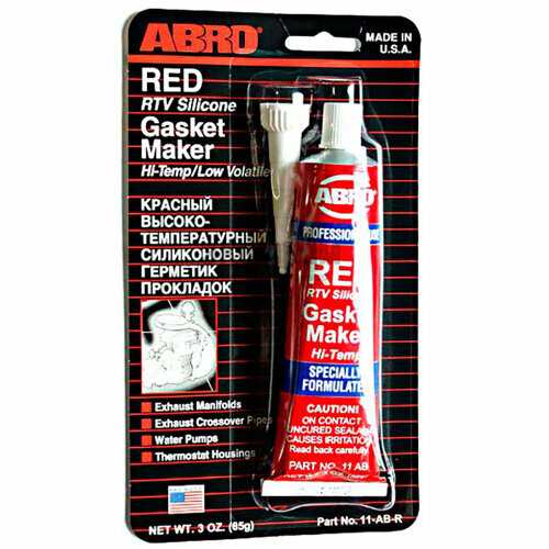Многоцелевой герметик-прокладка предназначен для ремонта или замены почти всех встречающихся в автомобиле прокладок. Герметик ABRO принимает любую форму и успешно выдерживает сжатие, растяжение и сдвиг; совершенно не разрушается под действием автомобильных масел, воды и антифриза. Также герметик ABRO обладает высокой стойкостью к бензину и тормозной жидкости. Герметик-прокладка Red (красного цвета) разработан для высоких температур до 343°С.