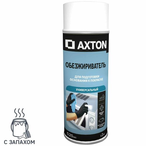 **Универсальный обезжириватель Axton** применяется для подготовки и обезжиривания поверхности перед покраской. Не оставляет следов, эффективно удаляет жир, подходит для внутренних и наружных работ. Подходит для металла, дерева, пластика. Не подтекает. Баллона объемом 520 мл хватит для обработки 2 м? поверхности.Перед нанесением изучите этикетку, в процессе работы соблюдайте меры предосторожности.Характеристики Обезжириватель аэрозольный универсальный Axton 520 мл:Внешний вид: МатовыйЗапах: С запахомМарка: AXTONМатериал поверхности применения: ['Металл', 'Пластик', 'Дерево']Назначение: ['Спальня', 'Детская комната', 'Гардеробная']Объем (л): 0.5Особенности продукта: Противокапельная системаРасход (м?/л или м?/кг): 0Страна производства: РоссияТип ЛКМ: На основе растворителяТип продукта: Спрей-растворительТип упаковки: АэрозольУход: Не моющийсяЦвет: БесцветныйЦветовая палитра: Бесцветный / прозрачный