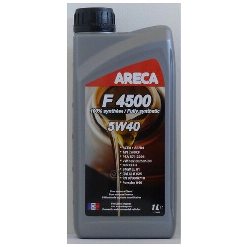 Areca Areca F4500 Essence 5w40 (1l)_масло Мот!Синтacea A3/B4,Api Sn/Cf,Vw502/505,Mb229.3/226.5,Jaso Ma2