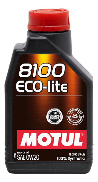 MOTUL 8100 Eco-lite 0W-20Применение100% синтетическое моторное масло с энергосберегающими свойствами. Специально разработано для современных мощных бензиновых двигателей легковых автомобилей в т. ч. С турбонаддувом и непосредственным впрыском, где предполагается использование масел с пониженным трением и очень низкой (? 2.6 mPa. s) HTHS вязкостью (вязкость при высокой температуре и высокой скорости сдвига).Предназначено для современных двигателей, требующих масел с классом вязкости 20 и энергосберегающими свойствами (соответствие классу API SN)Применимо в автомобилях, оснащенных системами нейтрализации отработанных газов. Некоторые двигатели не предназначены для использования в них данного типа масел, поэтому перед использованием этого продукта необходимо ознакомиться с руководством по эксплуатации автомобиля.ХарактеристикиНовый стандарт API SN имеет полную обратную совместимость с предыдущими требованиями API SM и ниже. API SM обеспечивает исключительную стойкость к окислению, высокие свойства предотвращающие образование отложений и очищающие двигатель. Высокие противоизносные свойства и высокая текучесть масла при низкой температуре в течение всего периода эксплуатации масла.Класс вязкости SAE 0W-20 снижает гидродинамическое трение и обеспечивает топливную экономичность в холодное время года.Хорошая прокачиваемость масла при запуске позволяет быстро достичь необходимое давление в системе и выйти двигателю на необходимый скоростной и температурный режимы.Экологически чистое. Это масло позволяет экономить топливо и соответственно свести к минимуму выбросы парниковых газов.Рекомендации по применениюЗамена производится в соответствии с рекомендациями производителя двигателя. Может смешиваться с маслами на минеральной и синтетической основе.Перед использованием необходимо ознакомиться с руководством по эксплуатации автомобиля.Допуски и спецификации: API SN/CF; ILSAC GF-5Рекомендации: Honda, Mazda, Subaru, Toyota