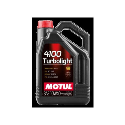 MOTUL 108645 MOTUL 10W40 (5L) 4100 TURBOLIGHT масло моторное\ACEA A3/B4,API SN,MB 229.3,RN0700,VW замена 100357-, масло моторное