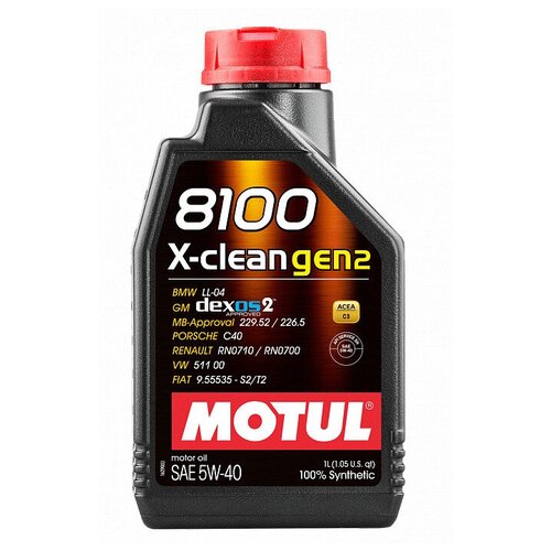 MOTUL 109761 MOTUL 5W40 (1L) 8100 X-CLEAN GEN2_масло мот.!синт.\ACEA С3,API SN,BMW Longlife-04,MB 229.5,VW 511 00