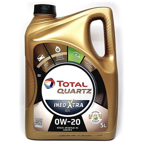 Total Quartz INEO XTRA EC5 0W-20 – передовое синтетическое моторное масло с функцией экономии топлива с пониженным значением сульфатной зольности и низким содержанием серы, фосфора, металлов (Low SAPS) для самых современных бензиновых и дизельных двигателей. На основе технологи Eco-Science – новейшей разработка Total Lubrifiants: продлевает срок службы двигателя, а также повышает эффективность его работы, что позволяет обеспечить защиту от износа и снизить расход топлива.спецификации И одобренияACEA C5, API SN PLUS – RC, ILSAC GF5, MB-Approval 229.71 , BMW LL-17FE +, Opel / Vauxhall OV0401547, Ford WSS-M2C947-B1, Jaguar Land Rover STJLR 03.5006, соответствует требованиям Fiat 9.55535-GSX, Chrysler MS-12145область примененияСпециально разработано для двигателей BMW, MB, OPEL, VAUXHALL, JAGUAR, LAND ROVER, FORD с максимально увеличенной удельной мощностью при снижении объёма двигателя, оборудованных системами Stop & Start и для гибридных двигателей, требующих применения синтетических масел с повышенной текучестью. Подходит для Fiat, Chrysler. Синтетическое моторное масло, позволяющее максимально снизить сопротивление движению рабочих поверхностей двигателя, увеличивая тем самым его эффективную мощность и, в то же время, обеспечивая экономию топлива. Подходит для всех стилей вождения, включая спортивный и высокоскоростной, независимо от сезона. Оптимизирует работу трехкомпонентного катализатора дожига выхлопных газов и сажевых фильтров, снижающих выбросы NOx, CO₂, со и сажи, обеспечивает соответствие требованиям автопроизводителей к уровню эксплуатационных свойств масла и экологическим стандартам. Класс вязкости масла «0W-» обеспечивает высокую текучесть и делает простым пуск двигателя даже при крайне низких температурах.