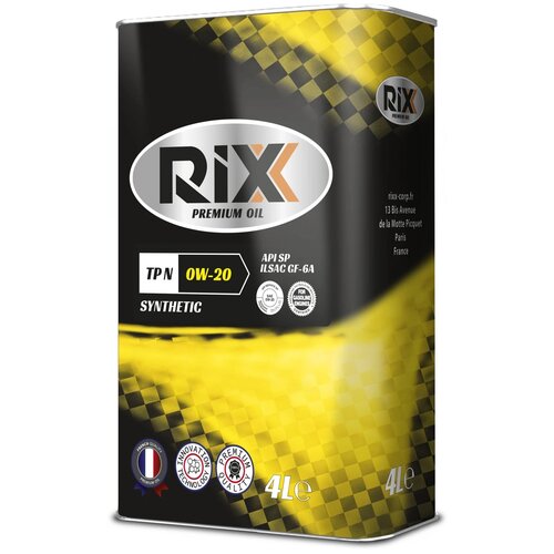 Rx0002tpn Масло Моторное 0w-20 Rixx 4 Л Синтетическое Tp N Sae Api Sp-Rc Ilsac Gf-6a