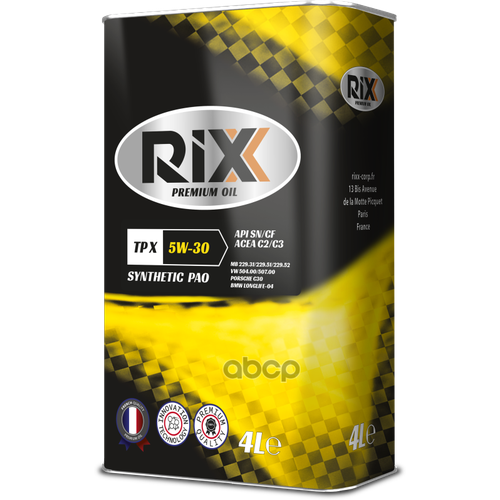 RIXX Синтетическое Моторное Масло Rixx Tp X 5w-30 Sn/Cf C2/C3 Железная Банка 4 Л