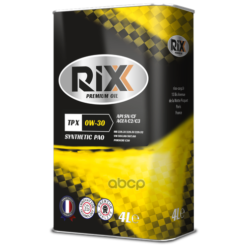 RIXX Масло Моторное Синт Rixx Tp X 0w-30 Sn/Cf Acea C2/C3 4 Л (Шт.)