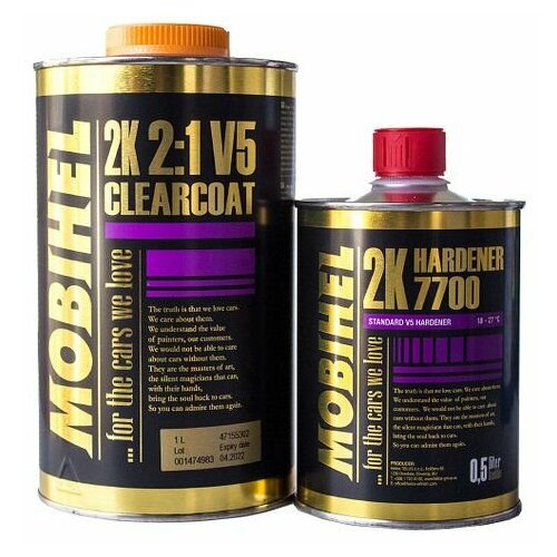 MOBIHEL/Мобихел Прозрачный акриловый автомобильный лак V5 AS 2К 2:1 HS 1л. + Отвердитель 7700, 0.5л. (Комплект)