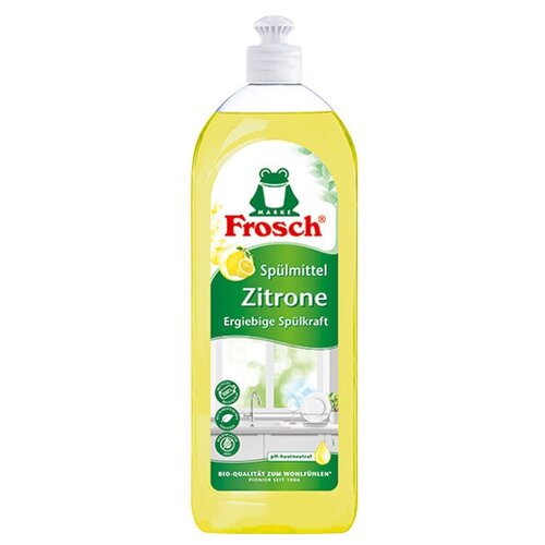 Средство для мытья посуды Лимон FROSCH эффективно растворяет жир и отмывает посуду до блеска. Продукт не вредит коже рук и протестирован дерматологами. Средство содержит моющие активные вещества растительного происхождения, которые разлагаются на 98%.