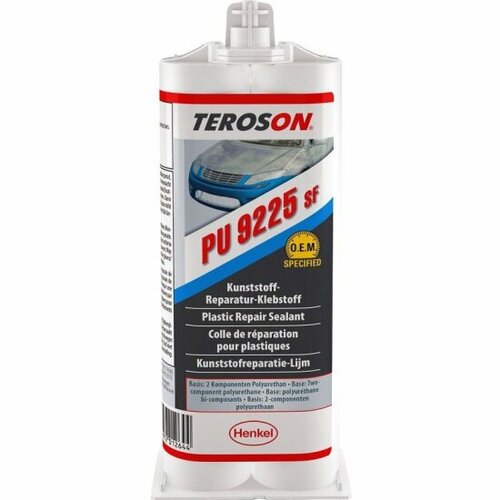 TEROSON® PU 9225 SF представляет собой 2-компонентный быстротвердеющийся полиуретановый клей. Используется для ремонта интерьера под покраску и пластиковых элементов экстерьера, в частности, для незначительных повреждений, таких как царапины или отверстия в бамперах, спойлерах и т. д. Применение с ручным пистолетом для 50 мл картриджей и соответствующим статическим смесителем. Рекомендуется подготовка поверхности с помощью TEROSON® VR 10Рекомендуется для участков ремонта менее 7 смОтличная шлифуемостьПревосходная адгезия к пластикам (используйте ускоритель адгезии TEROSON 150)Превосходная видимость всех систем окраски автомобилей (используйте промотор адгезии)OEM-решение для ремонтаБезопасен благодаря свойствам микроизлучения