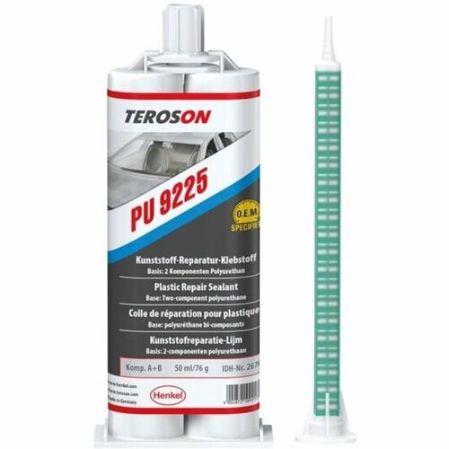 TEROSON 267081 Клей TEROSON PU 9225/Terokal 9225 2-компонентный полиуретановый темно-серый клей для ремонта пластиковых деталей бамперов, спойлеров, щитков и др., 50 мл