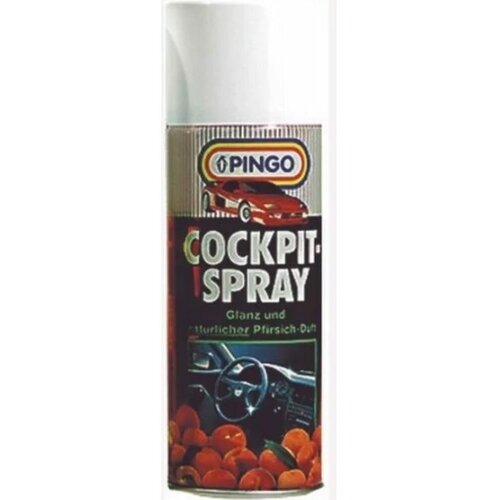Средство для ухода за салоном Pingo с запахом персика, аэрозоль, 400 мл 00047 7 эффективно очищает пластик от въевшейся пыли и грязи. Освежает цвет и придает шелковистый блеск. С глянцевым эффектом. Защищает поверхности от выцветания и выгорания, препятствует растрескиванию пластика. Обладает антистатическим эффектом.