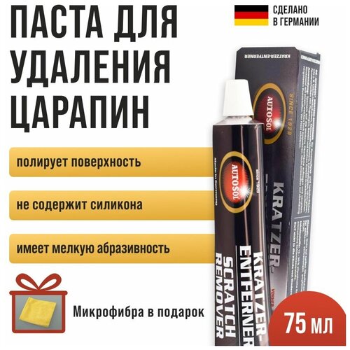 Полировальная паста, удалитель царапин, Autosol Kratzer Entferner объем 75 мл 01001300 + микрофибра в подарок