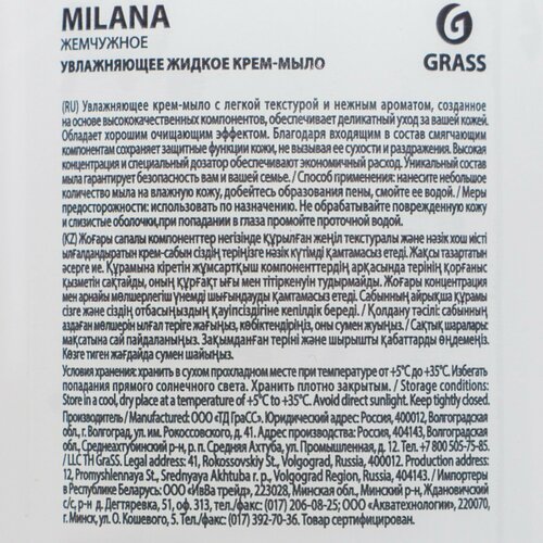 Жидкое крем-мыло Milana жемчужное с дозатором, 500 мл Grass