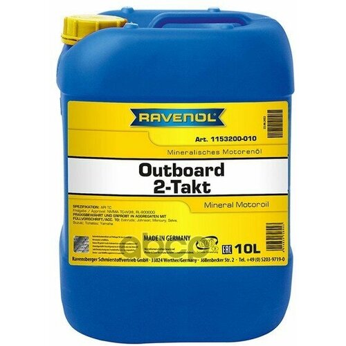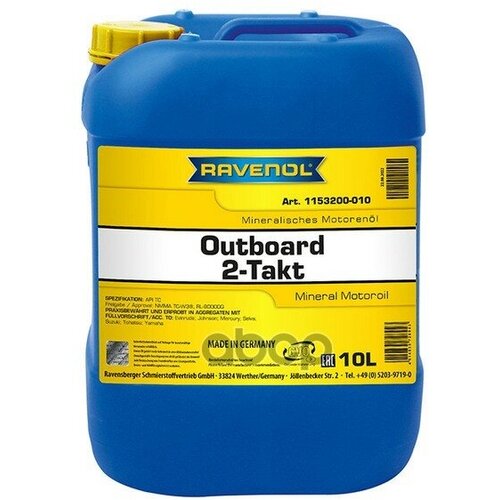 Моторное Масло Для 2т Лод.Моторов Ravenol Outboard 2t Mineral (10л) New Ravenol 115320001001999