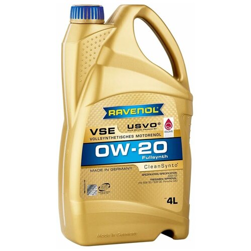 RAVENOL VSE SAE 0W-20 – полностью синтетическое моторное масло на основе полиальфаолефинов (ПАО), изготовленное с применением технологий USVO и CleanSynto для легковых бензиновых и дизельных моторов с и без турбонаддува и прямым впрыском топлива. Благодаря технологии USVO достигается максимальная стабильность вязкости. В рецептуре не используются модификаторы вязкости. Это помогает улучшить защиту двигателя, производительность, чистоту двигателя и увеличить интервалы замены масла. Технология USVO позволяет избежать потери на сдвиге в течение всего интервала замены и обеспечить устойчивость к окислению. Эта уникальная технология помогает осуществлять процесс смазывания быстрее, тем самым минимизируя трение, сохраняя при этом двигатель чистым и его производительность. RAVENOL VSE SAE 0W-20 минимизирует трение, износ, позволяет экономить топливо и обладает прекрасными низкотемпературными свойствами. Удлиненные интервалы замены согласно требованиям автопроизводителей. RAVENOL VSE SAE 0W-20 благодаря рецептуре на основе высококачественного базового масла имеет высокий индекс вязкости. Окрашено в зеленый цвет. Отличные свойства при «холодном» пуске обеспечивают оптимальное смазывание. RAVENOL VSE SAE 0W-20 сохраняет класс вязкости даже при длительной эксплуатации масла. RAVENOL VSE SAE 0W-20 уменьшает выброс вредных веществ в атмосферу Удлиненные интервалы замены по требованиям автопроизводителя. Область применения: RAVENOL VSE SAE 0W-20 универсальное, обеспечивающее экономию топлива моторное масло для бензиновых и дизельных двигателей с и без турбонаддува с прямым (непосредственным) впрыском топлива. RAVENOL VSE SAE 0W-20 разработано специально для двигателей, которым предписано применение моторного масла со спецификацией VW 508 00 / 509 00 (VW Blue Oil).