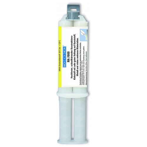 WEICON Plastic-Bond - это не содержащий растворителей конструкционный клей с очень хорошей адгезией к пластмассам, алюминию, стали и многим другим материалам. Клей подходит как для статических, так и для динамических нагрузок, обладает высокой ударной прочностью и прочностью на отслаивание, а максимальная ширина клеевого шва составляет 5 мм. Plastic-Bond особенно подходит для конструкционных соединений, где требуются высокопрочные соединения. Он обладает высокой вязкостью и подходит для обработки на вертикальных поверхностях.Конструкционный клей универсально применим и может быть использован, например, в машиностроении и приборостроении, автомобилестроении, производстве инструментов и пресс-форм, строительной и мебельной промышленности, на выставках и во многих других отраслях промышленности.Технические характеристики:Основа - МетилметакрилатЦвет после затвердевания - кремово-белый, молочныйПропорция компонентов смеси смола/отвердитель - 1:1Удельная плотность смеси - 0,98 - 1,02 g/cm^3Вязкость смеси - 40.000 - 60.000 mPa·sПроцедура обработки - A-B-методСтруктура - тиксотропныйЖизнеспособность при +20°C (+68°F) - 15 мин.Ручная прочность (35% прочности) - после 40 мин.Ручная прочность (50% твердость) - после 60 мин.Температура обработки - от +10 до +40 °CОкончательное отверждение (100% прочность) - после 12 чЗаполнение зазоров - 0,1 - 5,0 ммСреднее значение прочности на сдвиг согласно DIN 1465 на:Алюминий - 0 N/mm^2Сталь, подвергнутая пескоструйной обработке - 23 N/mm^2Нержавеющая сталь - 22 N/mm^2ПК (поликарбонат) - 11 N/mm^2Полиметилметакрилат - 9 N/mm^2АБС - 7 N/mm^2Твердый поливинилхлорид - 12 N/mm^2Композиционный материал на стекловолокнистой основе - 21 N/mm^2Углепластики - 22 N/mm^2Полиамид 6.6 - 1 N/mm^2Устойчивость к температурам - от -55 до +125 °C