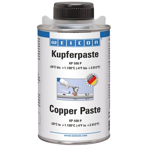 Медная паста устойчива к коррозии и прочна. Он не содержит серы, свинца или никеля.Медная паста используется в качестве монтажной смазки для резьбовых соединений и поверхностей скольжения любого типа. Она образует на монтировочных инструментах, изнашиваемых втулках, винтах, резьбовых, штекерных и байонетных соединениях любого типа эффективную смазочную и разделительную пленку, защищающую рабочие поверхности от коррозии и посадочной ржавчины.Она может использоваться для снижения вибрации на тормозных колодках и направляющих, разжимных кулаках и штифтах, на полюсных выводах батарей и других электрических соединениях легковых и грузовых автомобилей, на колесных болтах или колесных гайках, на изнашиваемых втулках электрических, пневматических и гидравлических молотов.Технические характеристики:Базовое масло - минеральное маслоЦвет - медьЗагуститель - алюминиевое комплексное мылоПлотность - 1,1 g/cm^3Твердая смазка - медь/графитКоэффициент трения (согласно DIN 940) - 0,11 - 0,13Коэффициент трения общий - 0,12 μКоэффициент трения резьба - 0,11 μКоэффициент трения верхней внутренней поверхности - 0,13 μЧМТ-тест (DIN 51350) нагрузка сваривания - 3.200 NУдельная теплоёмкость (20°C) - 1,713 J/(g·K)Температуропроводность (20°C) - 0,208 mm2/sТеплопроводность (ISO 22007-4) (20°C) - 0,392 W/m·KДиэлектрическая прочность (DIN EN 60243-1)(20°C) - 1,7 kV/mmКинематическая вязкость базовое масло (+40°C DIN 51562) - 180 mm^2/sТемпература каплепадения (IP 396) - +180 °CРабочая пенетрация (DIN ISO 2137) - 310 - 340 1/10 ммУстойчивость к температурам - от -20 до +1.100 °C