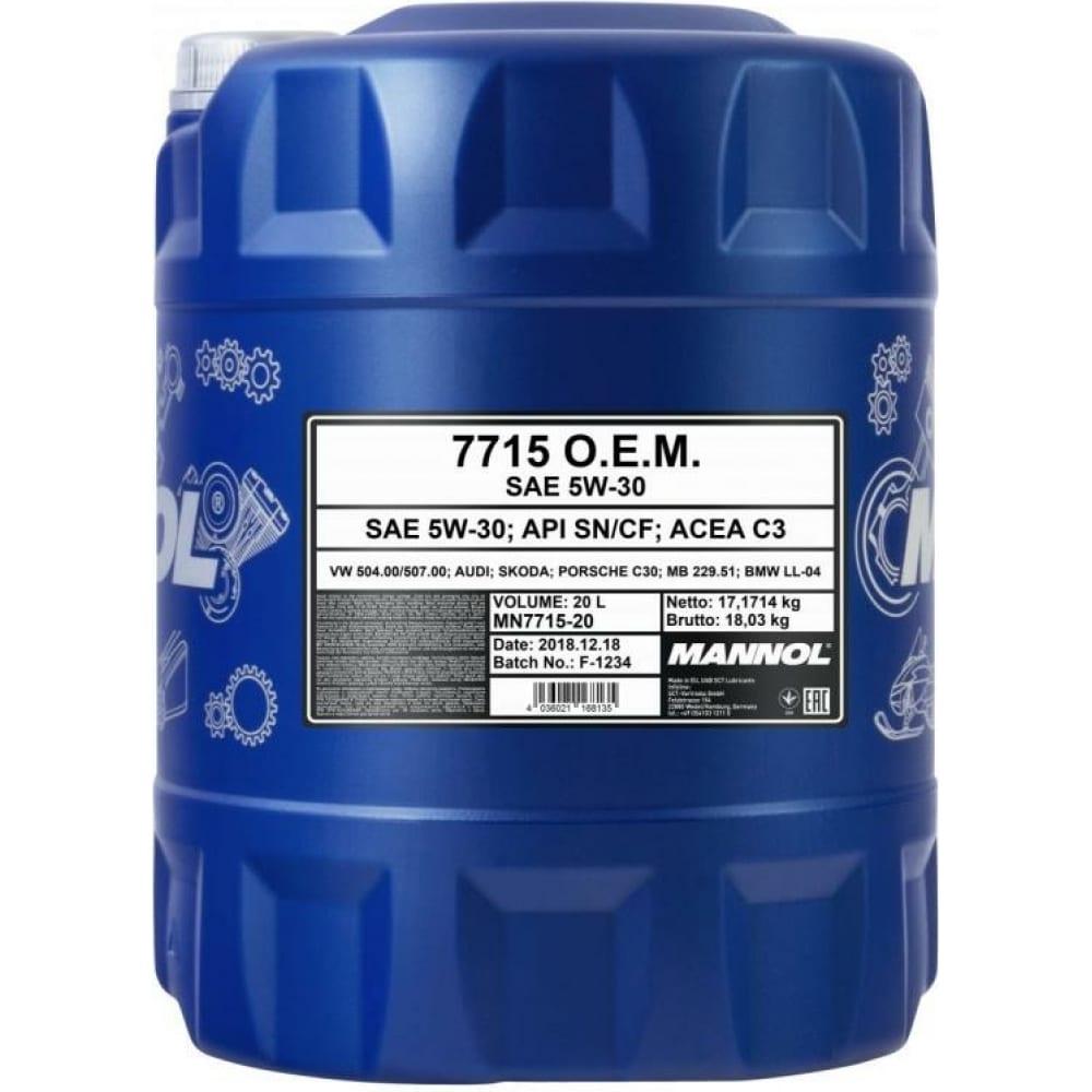 MANNOL 7002 Масло мотор. O.E.M. for VW AUDI SKODA 5W-30 20 л.
