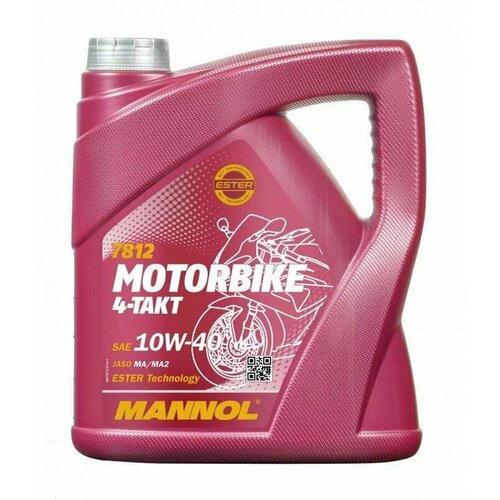 Синтетическое моторное Масло Mannol 4-Takt Motorbike 10W40 1л.Инновационное синтетическое ester-содержащее моторное масло для 4-х тактных высоконагруженных двигателей мотоциклов и питбайков, мотардов и т. д. для внедорожной (эндуро, мотокросса, триала и т. д.) и дорожной (стандрайдинг, супермото и т. д.) езды с экстремальными нагрузками. Разработано для гарантированной защиты двигателя и обеспечения долговечности КПП.Свойства продукта: Специальный пакет присадок и синтетическая основа обеспечивают высокий коэффициент трения в фрикционных элементах, что позволяет избежать их износа за счёт предотвращения проскальзывания и обеспечивают четкость и плавность работы сцепления при трогании, разгоне и движении с постоянной скоростью, что позволяет легко переключать передачи;Благодаря ester-содержащей основе имеет непревзойденные смазывающие, противоизносные и противозадирные свойства, снижающие расход топлива и увеличивающие мощность и срок службы двигателя. Максимально защищает от износа цилиндро-поршневую группу и клапанный механизм;Создано на исключительно стабильной Ester-содержащей синтетической основе и рассчитано на работу в экстремальных условиях эксплуатации, обладает непревзойдённой термоокислительной стабильностью и стойкостью к высоким температурам, при которых сохраняет исключительно прочную масляную пленку;За счёт высокого индекса вязкости сохраняет стабильные вязкостные характеристики при любых условиях эксплуатации, в том числе при высоких скоростях сдвига. Обеспечивает исключительно легкие холодные пуски зимой;Специальные моюще-диспергирующие присадки поддерживают идеальную чистоту деталей двигателя;Обладает отличными антипенными свойствами и низкой испаряемостью;Высокоэффективные ингибиторы обеспечивают отличные антикоррозионные свойства; Может смешиваться с аналогичными синтетическими маслами;Совместимо со всеми системами очистки выхлопных газов.Предназначено для бензиновых 4-тактных двигателей мотоциклов всех видов, мотовездеходов (квадроциклов), скутеров и мопедов с воздушным и жидкостным охлаждением, с интегрированной и неинтегрированной коробкой переключения передач, с муфтой сцепления в масляной ванне и «сухой» и прочей мототехники с каталитическими нейтрализаторами и без, где необходим уровень эксплуатационных свойств API SL или ниже и JASO MA/MA2. Идеально подходит для инжекторных двигателей. Соблюдайте предписания производителя, указанные в руководстве по эксплуатации двигателя, особенно по интервалам замены масла!